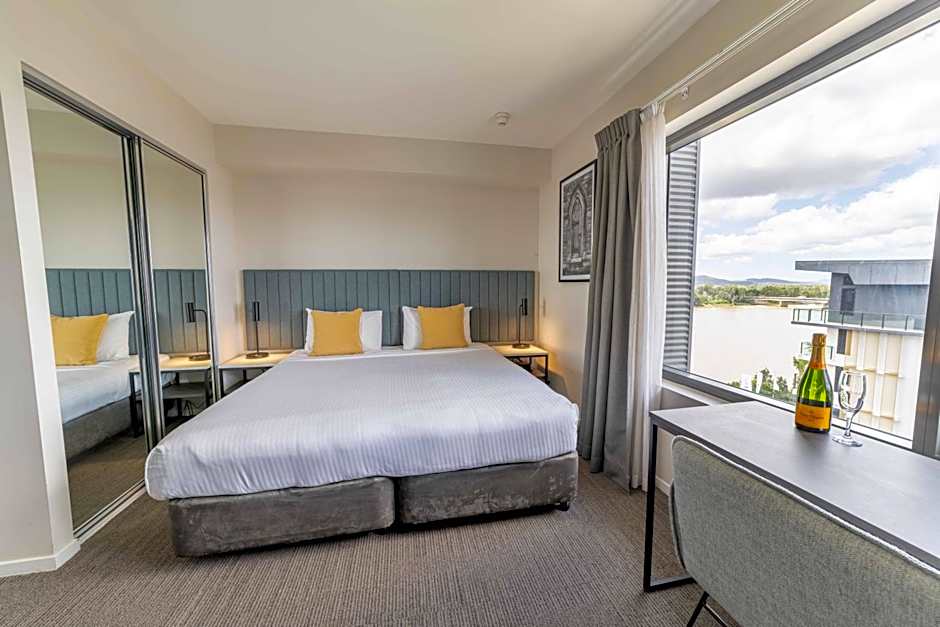 This modern apartment features balconies with river views. It also includes a fully equipped kitchen, laundry facilities, extra large double bed, flat-screen TV and an iPod Dock.